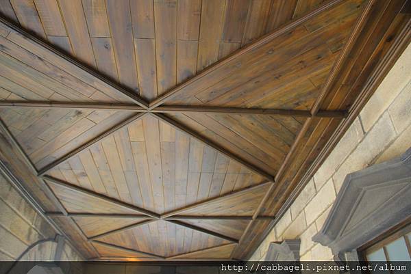 他除了門是木頭的、窗框是木頭的,連天花板都是木頭的呢!