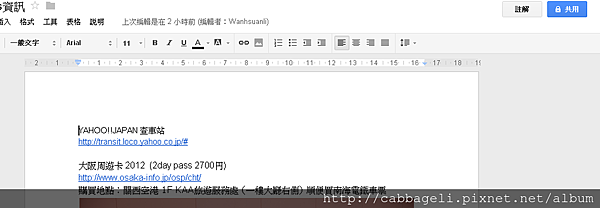 利用這種方法就可以跟朋友共同編輯行程 在一開始也可以把找到的資料都匯集在一起