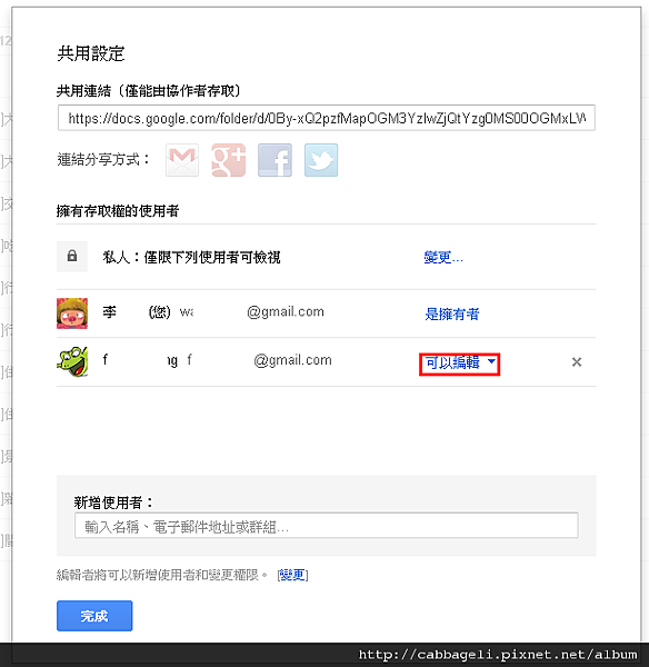 當然共用的對象也要有google帳號才行(應該是這樣)