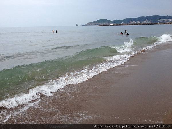 沙珠灣的海水有點綠綠的 當天其實有點像是要午後雷陣雨可是又下不下來的天氣