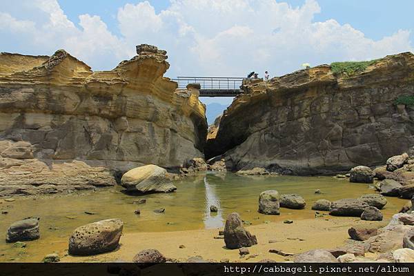 主要就是岩石被海侵蝕後行成一條溝這石頭另一面就是海洋 裡面這邊保留了一點淺水