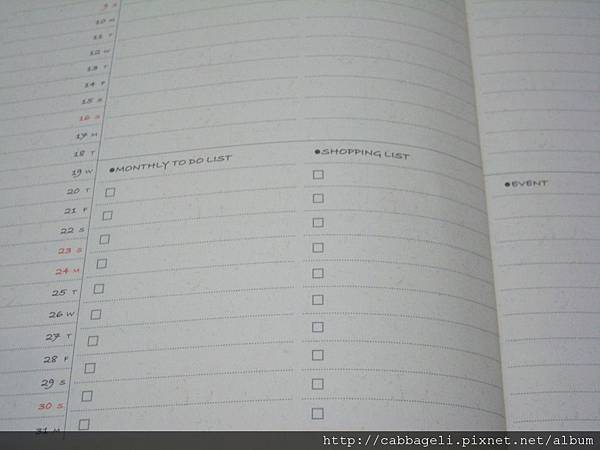 下面左頁有TODO LIST和SHOPPING LIST 右頁有EVENT