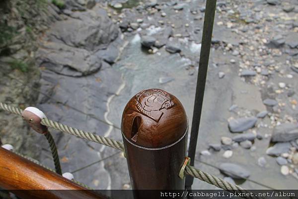 而橋上的木頭上也是刻著原住民的人像圖騰