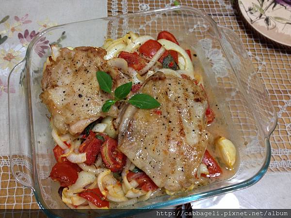 因為沒有抄下來 我就google了一下 結果找到另外一個食譜 番茄羅勒烤雞