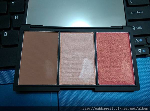 順便還買了一盤特價的眼頰盤以及腮紅打亮修容 3 in 1的彩盤