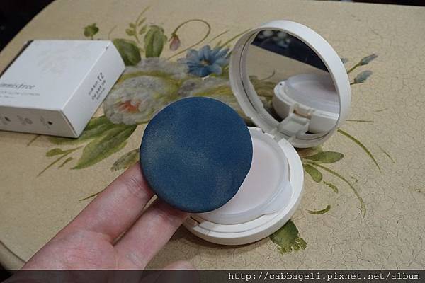 粉撲本身薄薄的 放在氣墊的蓋子上