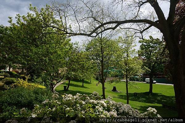 從半牆上(!?)拍的 沒什麼人 而且庭園綠蔭扶疏 很漂亮