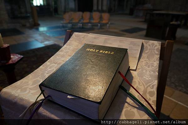 旁邊則擺放著聖經 也許是講經之人會在這講經吧